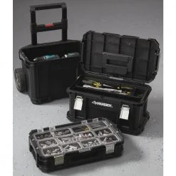 The Husky 27 in. 11-Drawer Tool Chest and Cabinet Combo is the perfect choice for storing and organizing all your tools and hardware. It is made from high grade all welded 21-Gauge steel and has a weight capacity of 1,500 lbs. The soft close drawers with included drawer liners can be fully extended and glide effortlessly on ball-bearing slides that can support up to 100 lbs. The reinforced top lid is supported by gas struts which make it easier to open and close. An ergonomic handle and 5 in. x 2 in. chrome hubcap casters allow you to easily move your cabinet around your workspace. Both the chest and cabinet have an internal keyed locking system for added security.