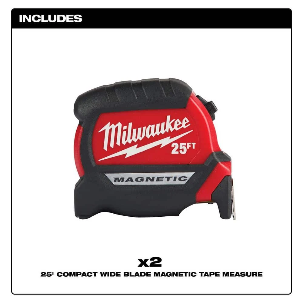 - Includes: (1) Adjustable Electricians Work Belt (48-22-8110) with (2) 25 ft. x 1 in. Compact Magnetic Tape Measure Set (48-22-0325)