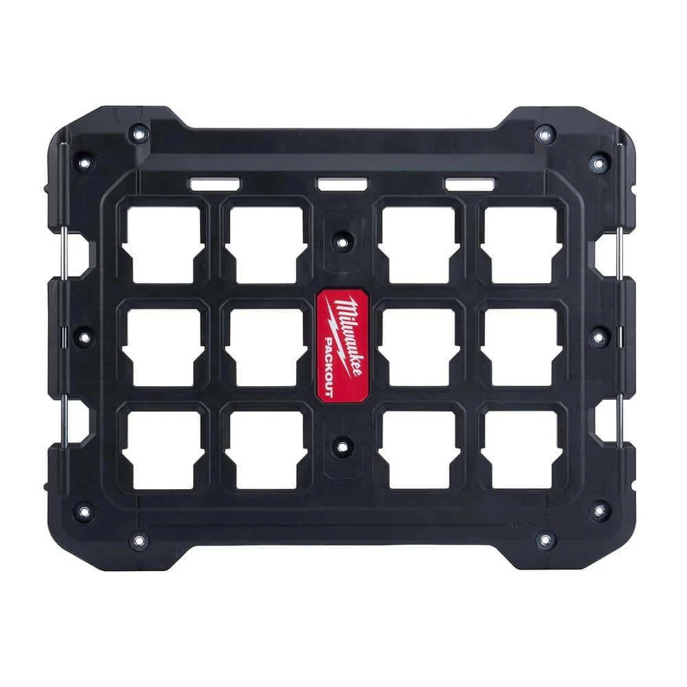 The Milwaukee PACKOUT Modular Storage System is the industry’s most durable and versatile storage system. The PACKOUT Mounting Plate is constructed with impact resistant polymers, providing users with up to a 100 lbs. weight capacity when mounted to the floor and 50 lbs. when mounted to walls. Metal reinforced mounting holes enable users to securely fasten the Mounting Plate to most surfaces, while metal reinforced tie-down points help users to secure job site supplies to the Mounting Plate. The PACKOUT Modular Storage System allows users to customize and build their storage system to easily transport and organize your tools and accessories.